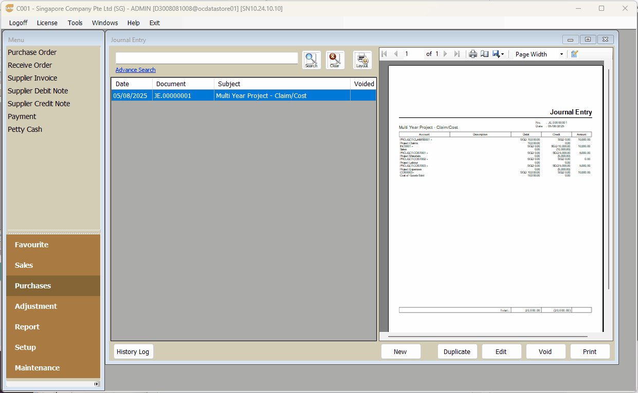 The system has a feature to import payroll entries into a Journal Entry. Required Setup Setup -> Company Details -> Default Setting. Currency: the default currency of the transaction Subject: the JE subject that will be created. Running No. : the ...