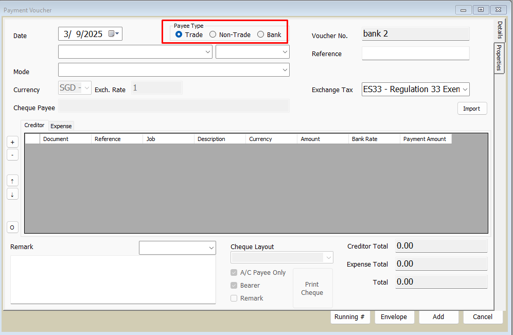 For smooth importing of entries into Batchpay, your payments should all be toggled to 'Trade'.