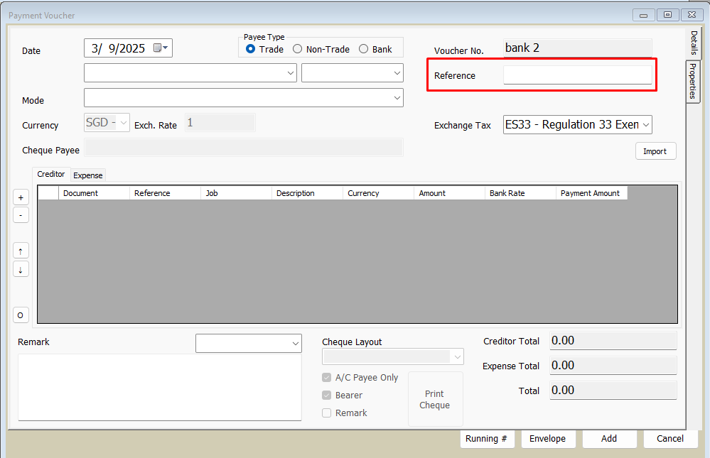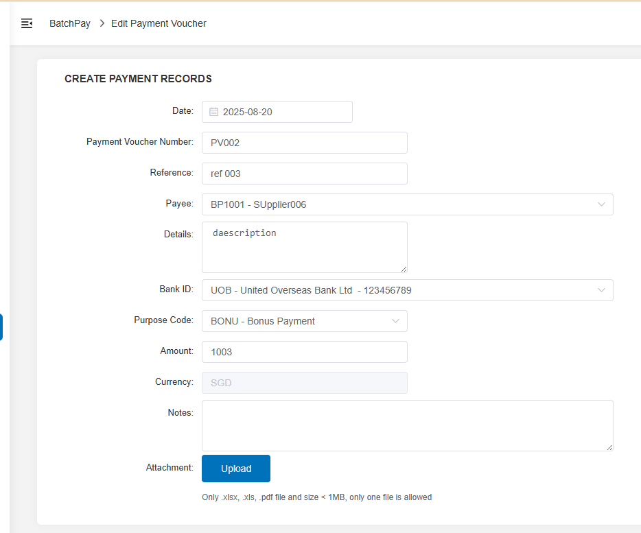 Changes to the entries (e.g. voucher value, reference), will NOT be reflected in the SAM system.