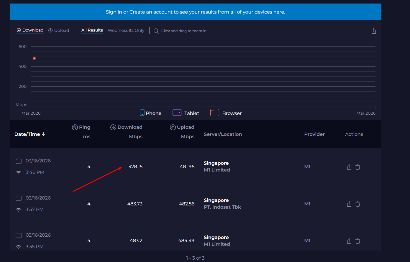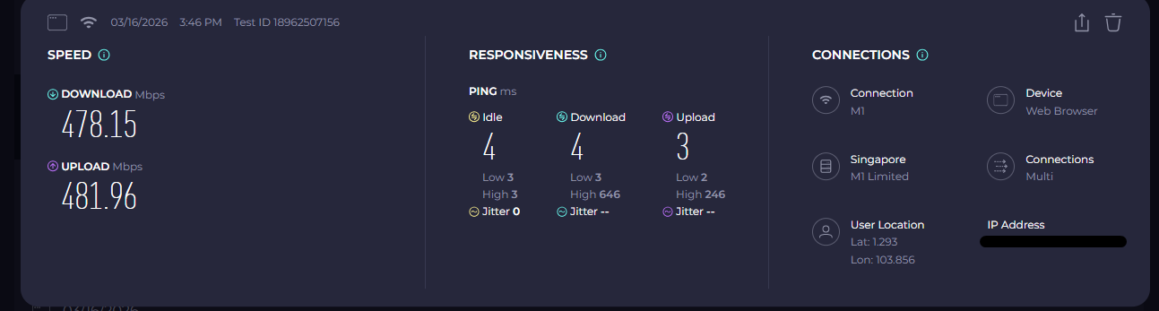 we look at the latency information, we expect the number to be under 20ms for a Singapore to Singapore