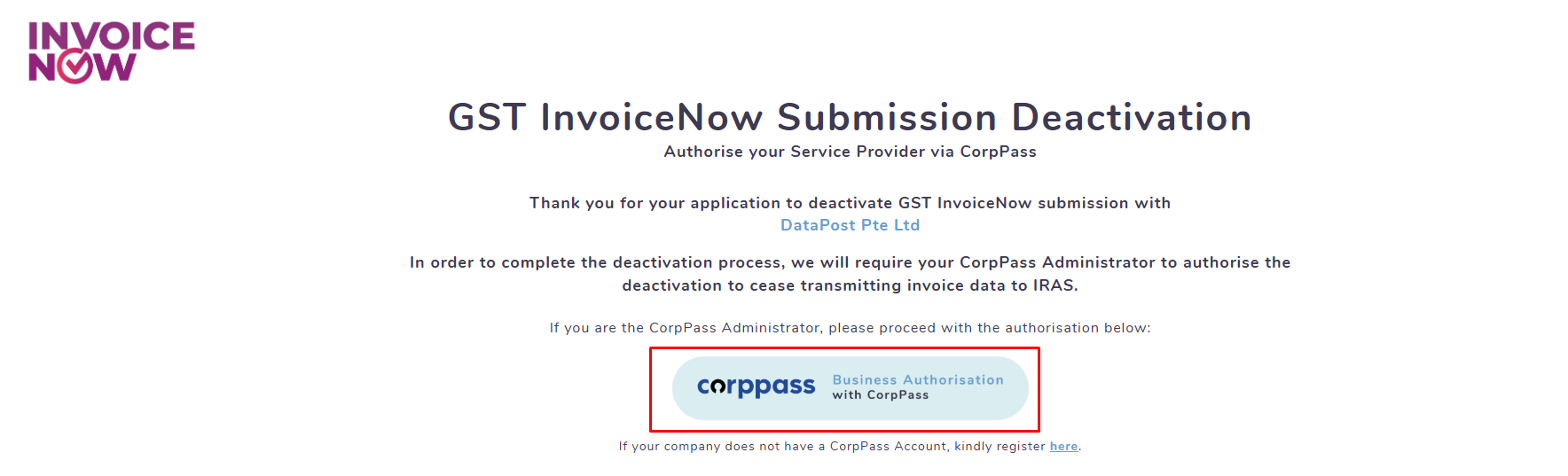 Upon Clicking on 'DEACTIVATE', SGNIC will send an email to your registered email address.