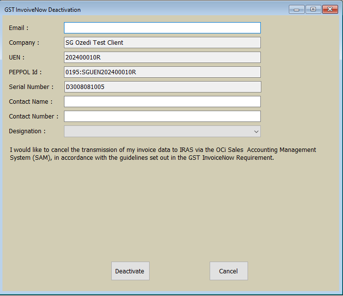 - Fill up the relevant mandatary fields* in the Deactivation page that pops up.