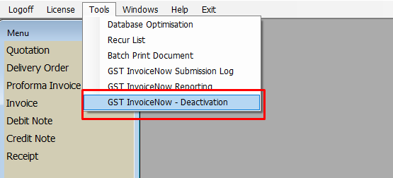 Similarly, at the top of your screen, Click on TOOLS > GST INVOICENOW - DEACTIVATION.