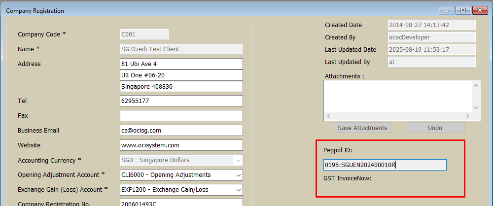 PEPPOL ID STEPS: Click on SETUP > COMPANY > COMPANY DETAILS > COMPANY REGISTRATION Click on 'EDIT'. Check PEPPOL ID is correct. If not, please register first. Link: https://support.ocisystem.com/portal/en/kb/articles/peppol-registration The ...