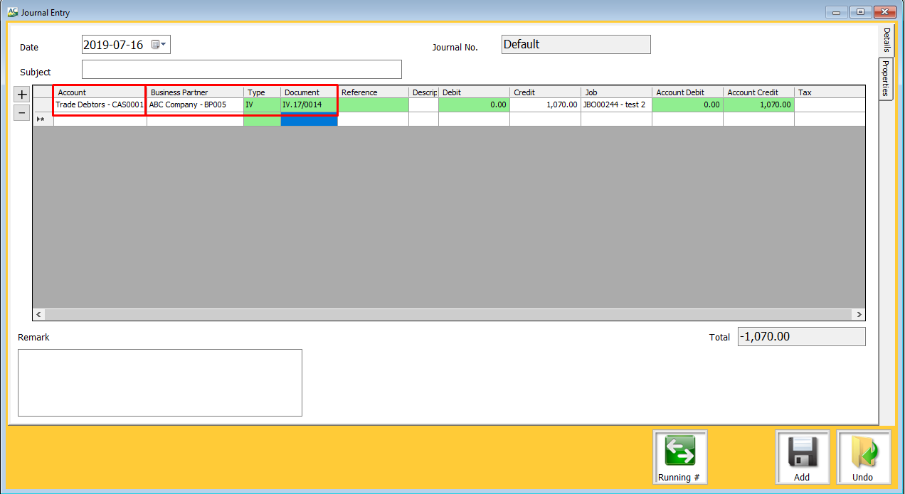 Next go through the entries. Verify that each entry that affects the Trade Debtor account has the required information specified.